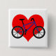 Ce bouton est imprimé avec un grand coeur rouge dans le backrgound et une bicyclette bleue dans le premier plan.