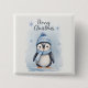 Une charmante illustration hivernale d'un adorable petit manchot portant un casquette rayé bleu et une écharpe, apportant une ambiance cosy et festive. Les flocons de neige doux et les tons bleus doux de l'arrière - plan créent une atmosphère hivernale magique. Parfait pour les cartes de Noël, les affiches, les autocollants et l'artisanat saisonnier !