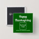 BON THANKSGIVING ! Fête pour célébrer ce novembre pour remercier pour les bénédictions que nous avons reçues. C'est aussi l'un des jours fériés pour annoncer votre entreprise. Bouton de forme carré que vous pouvez customiser pour mettre votre nom d'entreprise, logo et avec l'accueil de Thanksgiving. Customisez-le et utilisez-le comme accessoire uniforme pour accueillir vos clients ou clients ce Thanksgiving et pour annoncer également votre entreprise ou pour promouvoir votre marque. Accessoire de vêtements personnalisable que vous pouvez utiliser comme matériel de marketing pour sensibiliser la marque. Les couleurs design sont vert clair et blanc textes sur arrière - plan vert. Veuillez vérifier l'apparence après avoir téléchargé votre logo d'entreprise et tapé votre nom d'entreprise. Si l'apparence vous plaît, vous pouvez passer votre commande maintenant. Si vous avez besoin de redimensionner et déplacer le logo et votre nom d'entreprise pour tenir sur ce bouton, veuillez modifier l'outil de conception. Vous pouvez également modifier la couleur arrière - plan, la couleur de police et le style de police dans l'outil de conception. BON THANKSGIVING ! Je vous souhaite plus de ventes ce jour férié.