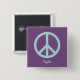 Bouton rose violet et bleu, ce design présente un symbole de paix bleu. Sur un arrière - plan violet, customisez votre nom en police cursive bleue. Commandez dès aujourd'hui ! OEuvre de symbole de paix créée par : Design Prettygrafik (https://www.etsy.com/shop/Prettygrafikdesign)