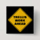Un panneau classique de prudence en diamant jaune avertit que les treillis travaillent en avance dans une police sans serif noire épaisse. Un jeu de mots sur les mots d'une enseigne classique, route à suivre, humour de jardin, architecture de clôture, pour pergola ou plantes.