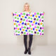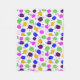 Macaron Confetti Blanket features a sweet cookie design in bright blue, yellow, lime green, purple and pink and paint splatter details. Designed by artist Jodi L. Lopez.