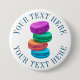 Macaron pinback buttons with personalized text. Large size round buttons with French macaroon cookies drawing. Cute colourful watercolor design with elegant text template. Create name badges for pastry shop, candy store, bakery, party, school, company event, celebration, kids party, gathering, meeting, reunion, corporate Holiday party etc. Available in small, medium and big sizes. Pink, green, orange and blue colours.