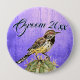 Aquarelle tissée perché sur un cactus sur un arrière - plan violet et lumières de fées bouton de fête de mariée faveur. Faites-en un pour chaque membre de la fête de mariage ou créez une faveur mémorable et durable.