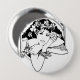 Un coin de style jongleur noir et blanc d'une fille avec des shamrocks dans les cheveux. Ses bras sont croisés avec de la verdure dans ses mains. Disponible avec ou sans effet d'éclaircissement. Ces boutons sont disponibles dans un assortiment de styles et de tailles. Idéal pour célébrer la Saint Patrick.