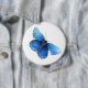 Bouton/insigne bleu de papillon. Papillon peint en aquarelle et gouache par Sarah Trett.