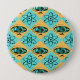 Ce modèle de Bouton rond Arlequin Retro Globe Trotter présente un motif répétitif d'un globe ovale abstrait avec des continents à grains de bois et des symboles atomiques. Les océans du globe vintage sont dans les tons turquoises et turquoise. Le globe est sur un socle en bois triangulaire et le monde entier est sur un arrière - plan de couleur blé. Les symboles atomiques sont sur un arrière - plan turquoise. Ce design est kitschy, la bonté d'âge de l'espace à son meilleur !
