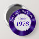La Réunion personnalisable pourpre et blanche de classe de 4 pouces se boutonne avec votre texte. Concepteur Linda d'APPEL à : 239-949-9090 pour changer les goupilles pourpres et blanches de la Réunion de classe en vos couleurs d'école.