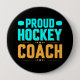 Bouton entraîneur de hockey avec aqua bleu et or texte dit Proud Hockey Coach.