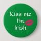 Ce bouton vert amusant est accentué de lèvres rose vif et le dicton mignon, Kiss Me Je suis Irlandais, en faisant un accessoire parfait pour la Saint Patrick's Day.