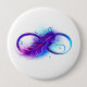 Infinity symbole with a beautiful feather painted in purple and blue bright colors on white background