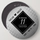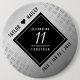 Célébrez le 11e anniversaire du mariage d'acier avec ce bouton élégant! Une élégante lettrage noir et blanc sur un arrière - plan en acier usé et plaqué diamant apporte une touche inoubliable pour cette occasion spéciale et cette étape importante. Personnalisez avec les noms et les dates du mariage du couple. Design © W.H. Sim. Voir plus sur zazzle.com/expressionsoccasions