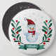 Bouton de noël personnalisé avec bonhomme de neige aquarelle, flocons de neige et fleurs d'hiver. Il y a aussi une zone où vous pouvez écrire tout ce que vous voulez - nom, monogramme ou autre, très facile à modifier et vous pouvez choisir parmi de nombreuses polices différentes, si vous voulez.