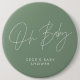 Baby shower script moderne sauge clair vert et blanc élégant décor de fête habillage design bouton. Idéal design contemporain minimaliste baby shower fête.