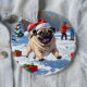 Macaron Rond 15,2 Cm Carlin en neige avec Casquette de Noël