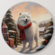 Macaron Rond 15,2 Cm Chien Samoyé à Noël de neige