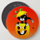 Bouton Citrouille coloré et chat noir. L'illustration complète a été conçue par Lajuana Thompson
