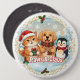 Celebrate the holidays with irresistible cuteness in this charming Christmas animal design. Featuring an adorable trio—a ginger cat in a Santa hat holding a wrapped gift, a golden retriever puppy wearing a plaid scarf with a gingerbread bone, and a sweet penguin in earmuffs and a bow tie clutching a candy cane—this scene radiates festive joy. Set in a snowy winter landscape with distant mountains and framed by a decorative scalloped border accented with golden glitter swirls and holly, the playful phrase “Paws & Claus” completes the look. Perfect for animal lovers, this design captures the warmth, whimsy, and cheer of the Christmas season.
