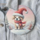 Macaron Rond 15,2 Cm Petit chiot de Noël en chapeau santa