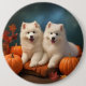 Macaron Rond 15,2 Cm Samoyed Chiot Automne Citrouille de plaisir