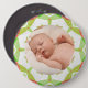 Soft Pretty Green Pastels Personnalisé Joyeux Noël Photo Ornament Pin Bouton Bouton Bouton Bouton. Pastels Jolly et Festive Vert et Jus Orange Personnalisé Photo de Noël Cadre Rond Décoration Vêtements de Noël. Un ornement coloré doux pour votre jolie goutte verte et orange dopamine. Le design de cadre est une joyeuse conception géométrique abstraction motif sur les modèles traditionnels de blocs de couleurs festives. Dans les couleurs pastel de l'arbre d'hiver vert et de l'orange joyeuse vive pour un design Winter Wonderland. Personnalisez-le en remplaçant les photos par les vôtres pour un cadeau pour la famille et les amis pour célébrer Noël. La photo du stock montre un bébé qui dort. Cherchez vos souvenirs de Yuletide. Un grand cadeau pour les meilleurs amis et frères et soeurs, ou de nouveaux parents et grands-parents. Un cadeau de conservation abordable, pour des fêtes de famille ou le premier Noël d’un bébé.