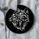 Macaron Rond 15,2 Cm Tête de loup blanc sur noir