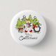 Un bouton design de Noël mignon et coloré avec un ours polaire, un pingouin et une souris avec des écharpes et des patins à glace avec des arbres enneigés et un texte qui dit C'est Noël !