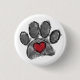 Empreinte de patte de chien et aquarelle du coeur en rouge, noir et gris. Boutons personnalisés pour les maisons et les entreprises. Idée cadeau pour les amoureux de les chiens.