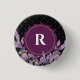Macaron Rond 2,50 Cm Aquarelle violet Iris noir Damas Monogramme