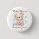 Célébrez la future maman avec un bouton de baby shower personnalisé avec un ours mignon et des papillons. Le nom de l'événement spécial ainsi que le nom de la mère à être et son monogramme sont en vedette. Utilisez le modèle pour personnaliser.