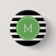 Élégantes rayures noir et blanc. Accent cercle vert avec monogramme personnalisable.