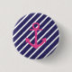 Design d'ancrage nautique rose chaud très élégant sur bleu marine et blanc rayures arrière - plan.
