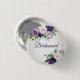 Belle prune violette et lavande douce aquarelle florale et verte sur bouton de la femme de ménage botanique blanche. Elles peuvent être personnalisées avec "Bridesmaid" ou le nom du client. Concevez-en un pour chaque convive nuptiale.
