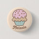 Bouton sucré personnalisé avec l'illustration mignonne d'un cupcake gelé rose.