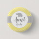 Cette épingle de baby shower sans distinction de genre présente une jolie silhouette d'éléphant gris sur un cercle blanc gris. Les mots "Tante à être" apparaissent dans la typographie de script cursive grise. L'arrière - plan motif à pois jaune est biscuité par un ruban gris avec une bordure blanche en pointillé pour simuler la couture.