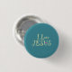 "I Love Jesus" Gold sur Turquoise Button. Bon appétit !