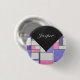 Macaron Rond 2,50 Cm Impression Mondrian Rose Violet Blanc