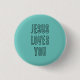 Macaron Rond 2,50 Cm Jésus vous aime Personnaliser Aqua & Black Modern