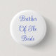 Épinglette de mode accessoire de déclaration amusante et décontractée imprimée avec un fond de couleur blanche et "Frère de la mariée" en texte de couleur bleu royal typographie lettrage design par TheFabricSeal boutique d'impression à la demande sur Zazzle.com #ZazzleMade https://www.zazzle.com/store/thefabricseal TheFabricSeal©️Original.