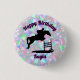Célébrez l'anniversaire d'un équestre avec ce bouton pastel unique ! Doté d'une silhouette dynamique d'un cheval et d'un cavalier qui nettoient un saut, ce design est parfait pour les filles d'anniversaire amateurs de cheval. L'arrière - plan irisé ajoute une touche de scintillement et de magie, ce qui en fait un souvenir inoubliable ou une faveur de fête. Personnalisez-le avec le nom de la fille d'anniversaire pour une touche spéciale supplémentaire. Montrez votre amour pour les chevaux avec ce bouton dynamique, amusant et personnalisé!