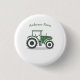 Un bouton avec une illustration d'un tracteur agricole vert et gris en dessin animé ! Une bonne idée à offrir à un fermier, un enfant ou une famille rurale !