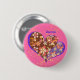 かわいいピンクの鮮やかなお花模様レトロハート♡ 缶バッジ