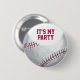 Bouton personnalisé de baseball d'anniversaire dit à tout le monde que c'est votre jour. Faisant partie d'un ensemble de 12 jeux de design de baseball noir et rouge amusant et audacieux, indispensable pour votre soirée sportive à thème. Fête !