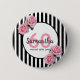 Macaron Rond 5 Cm 60e anniversaire rose roses noir blanc rayures