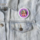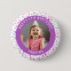 Joyeux anniversaire à vous, ajoutez le nom, l'âge et la photo à ce bouton d'anniversaire personnalisé. Arrière - plan de confetti mignon rose et violet.