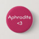 Un badge rose "Aphrodite heart". Aphrodite était la déesse grecque antique de l'amour et de la beauté.