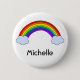 Un arc-en-ciel émerge des nuages sur ce bouton avec un nom ci-dessous dans les lettres noires. Personnalisez avec votre propre nom ou tout autre texte. Customisez pour changer le style de police et la couleur.