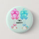 Ligne créative et design sucré avec des jumeaux flottant sous des bouquets de ballons roses et bleus.