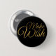 Birthday Make a Wish Black & Gold Button a des lettres d'or sur un arrière - plan noir.