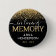 Simple bouton funéraire non photo avec un arrière - plan noir tendance, une élégante cascade de parties scintillant or, la sympathie disant "dans la mémoire aimante", leur nom, et les années.
